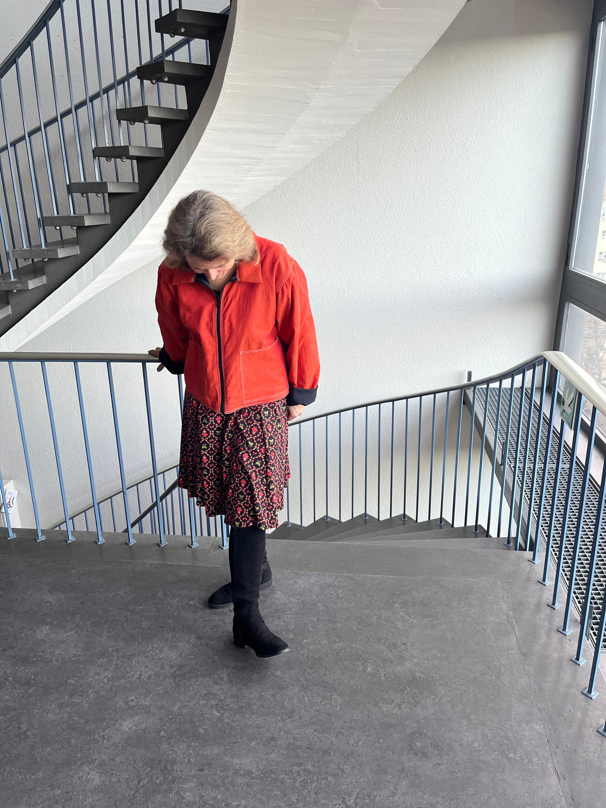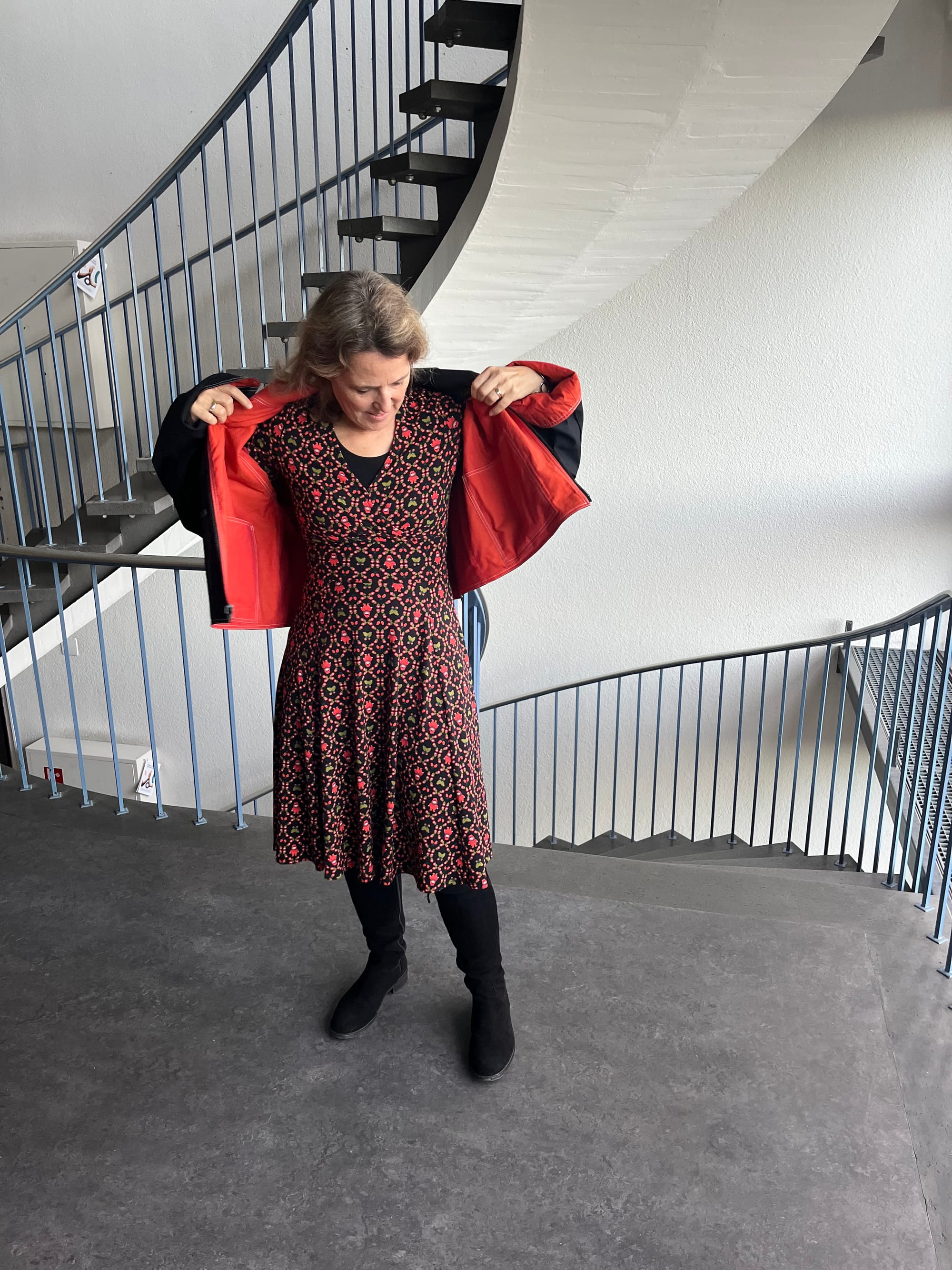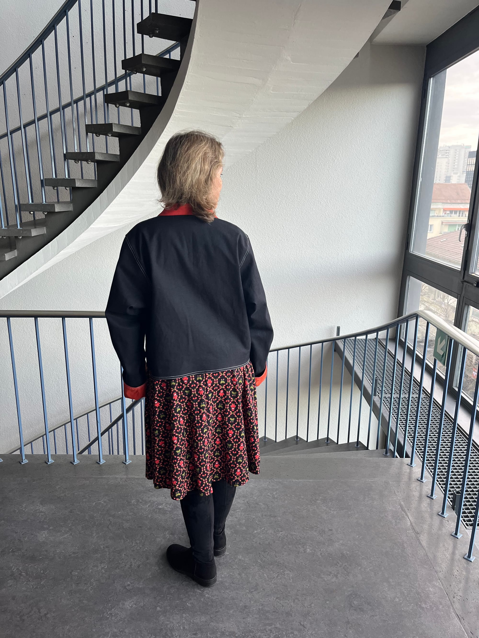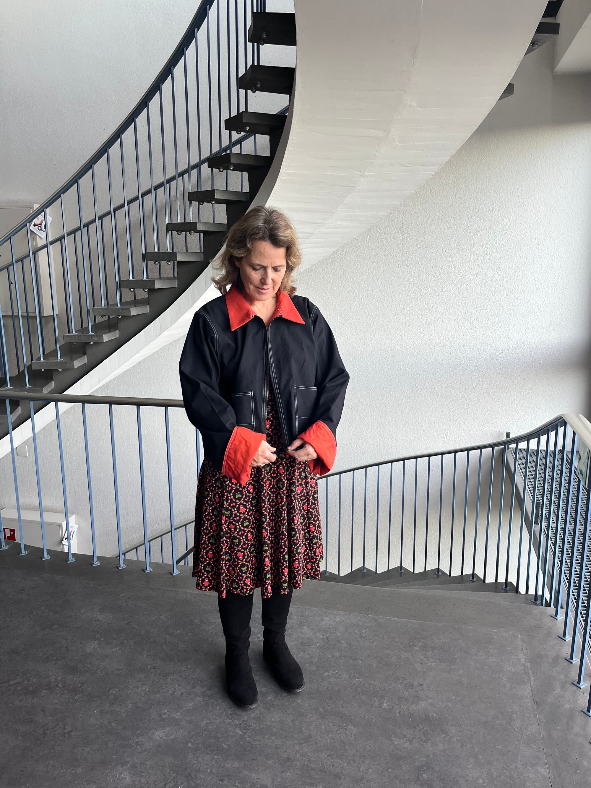 Die folgende Jacke habe ich mit dem orangen Stoff gefüttert, so dass sie von innen und von aussen getragen werden kann.